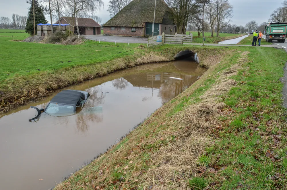 Op de Eesveenseweg tussen Steenwijk en Eesveen raakte vrijdagochtend een cabrio te water nadat deze moest uitwijken voor een vrachtwagen.