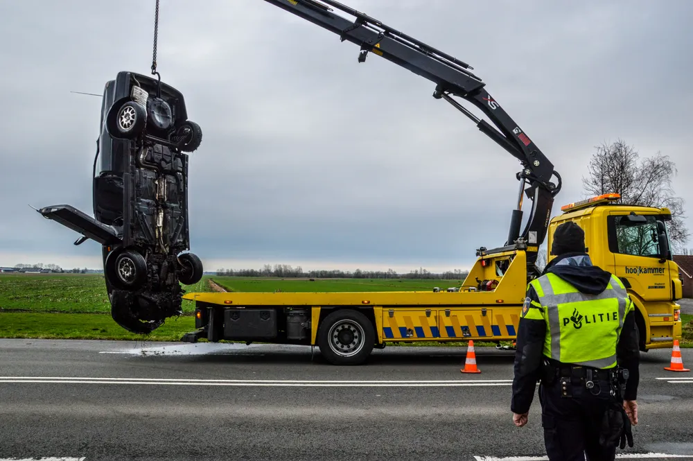 Een berger heeft het voertuig uit het water weten te halen en geborgen.