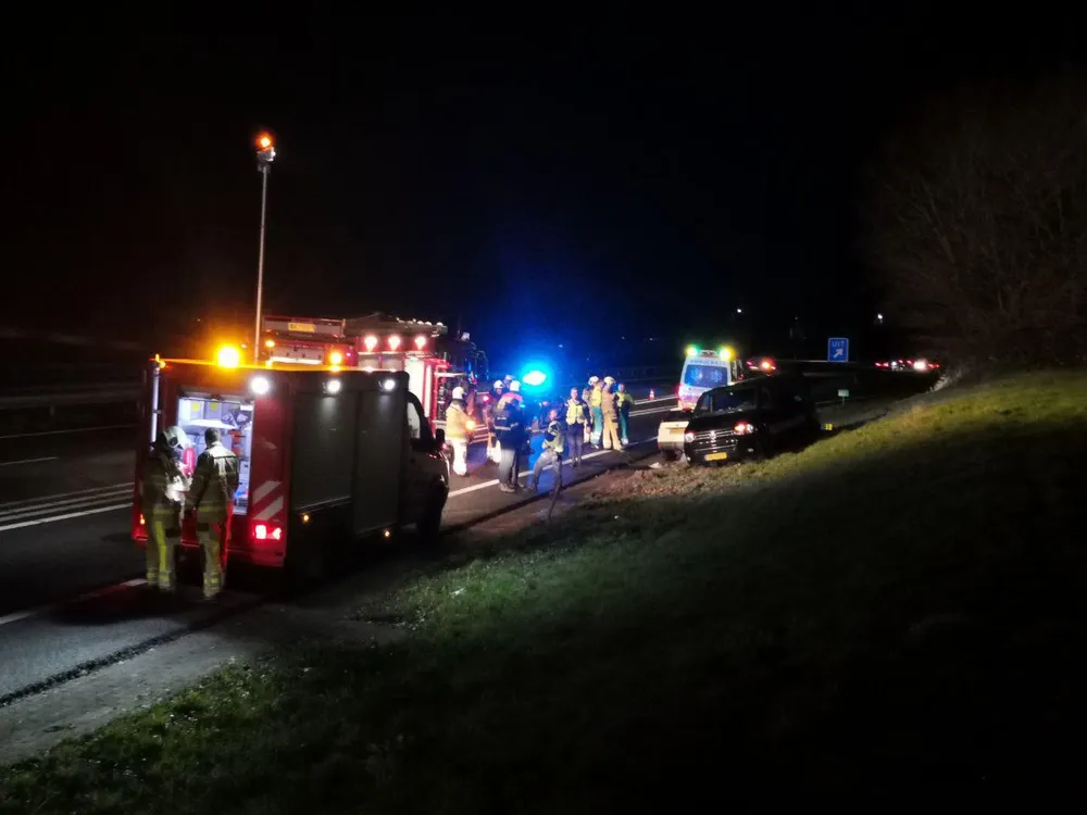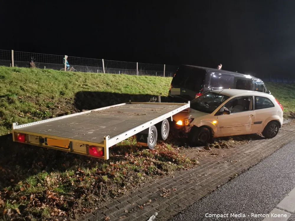 Een auto kwam onder een aanhanger terecht die werd getrokken door een bestelbus, een andere auto kwam in de afrastering voor reeën terecht. Alle drie de voertuigen zullen worden geborgen.