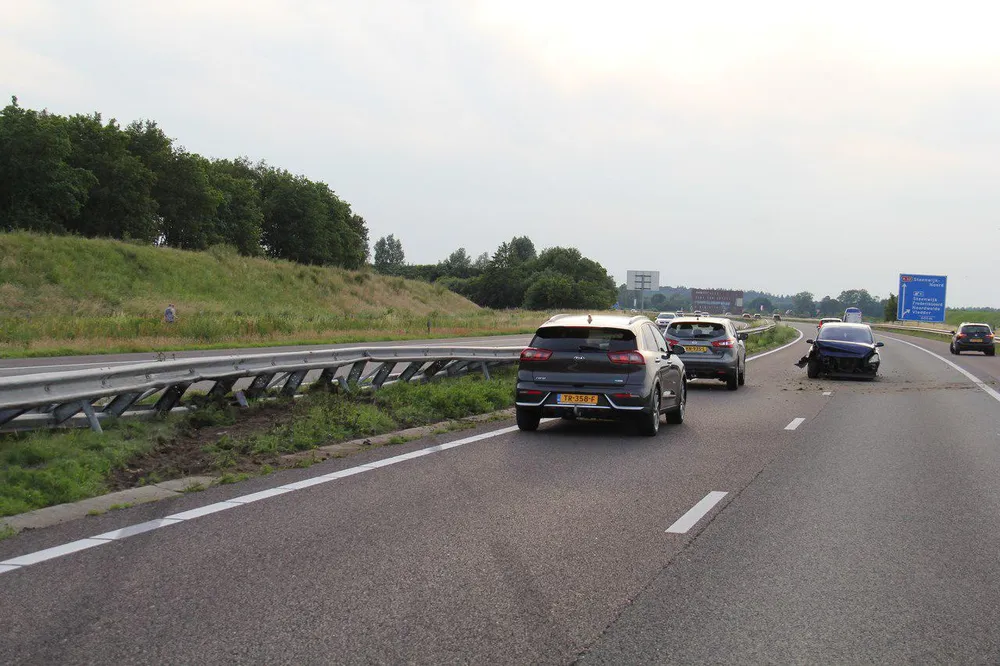 De auto is total loss en is door een bergen geborgen. Rijkswaterstaat liet weten dat er direct een spoedreparatie zal plaatsvinden om de middengeleider te herstellen.
