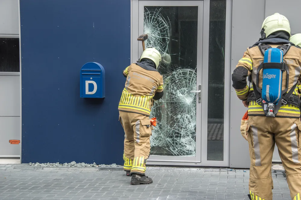 De brandweer heeft uitgebreid onderzoek gedaan in alle units, hierbij moest één deur worden geforceerd omdat er geen sleutel aanwezig was.