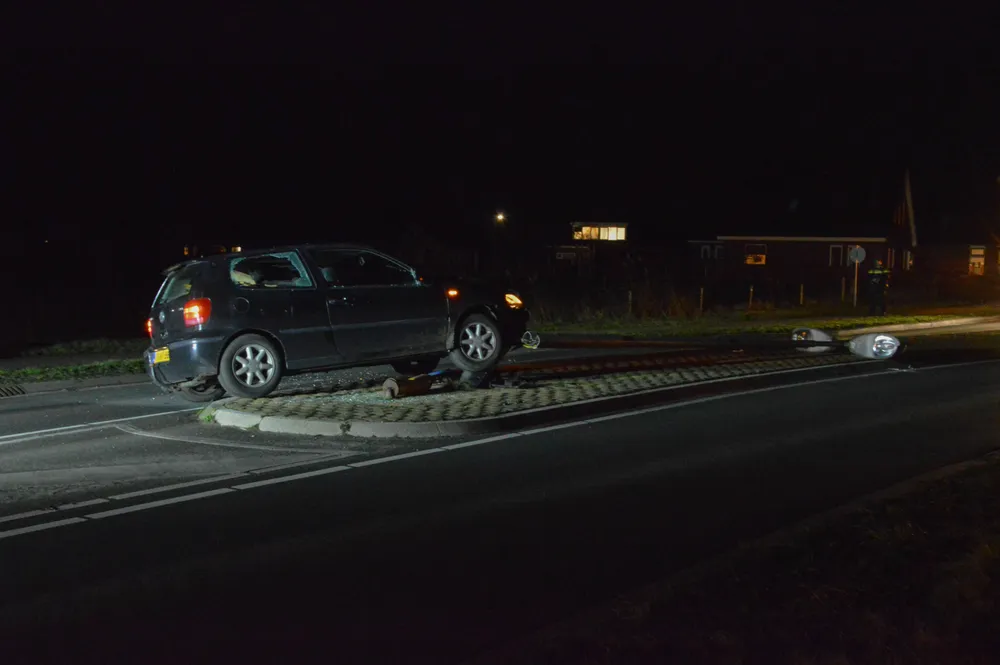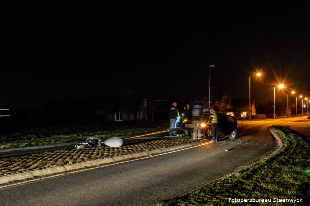 De Steenwijkerweg in Witte Paarden was woensdagavond deels in het donker gehuld nadat een bestuurder door nog onbekende redenen over de middengeleider op een lantaarnpaal botste.