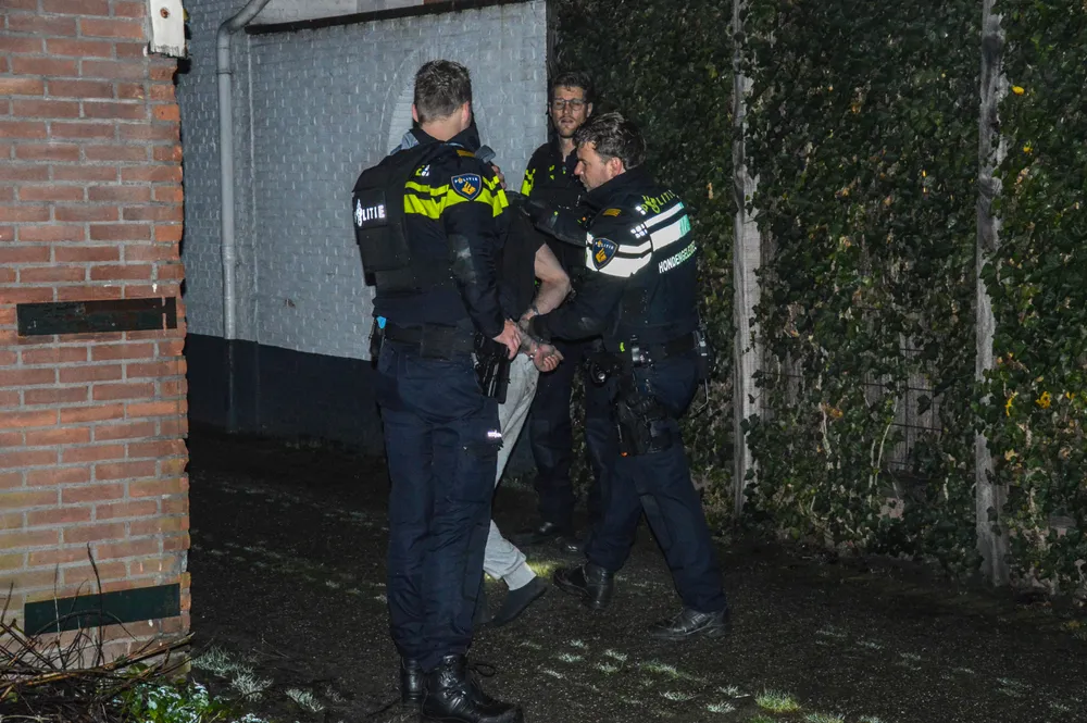 Niet veel later werden agenten weggeroepen naar het Zuideinde waar de verdachte uiteindelijk rond half elf kon worden gesignaleerd op het dak van een schuur achter een woning.