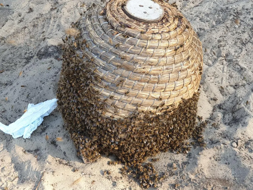 Door het warme weer groeien de bijenvolken erg snel, de imker uit Witte Paarden heeft de kolonie in een korf gekregen en zal deze in een bijenkast plaatsen in de Weerribben.