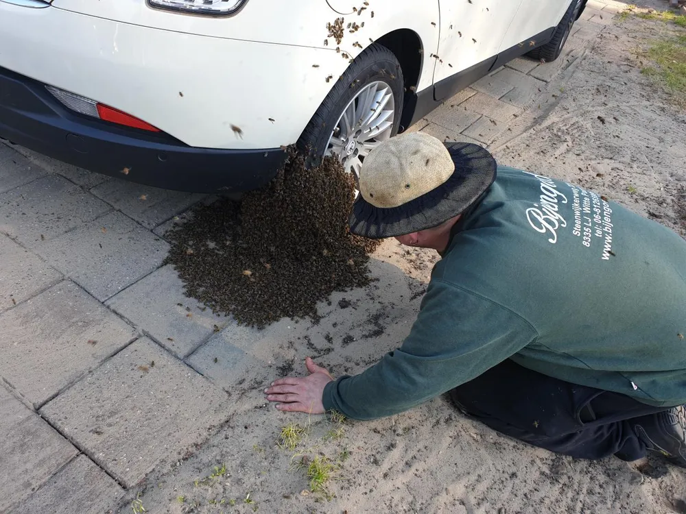 Een geparkeerde auto in Steenwijk was vanmiddag het doelwit van een grote zwerm bijen, aan de achterkant van de auto zat een dusdanig grote bijenkolonie dat een imker er aan te pas moest te komen om de zwerm te verwijderen.