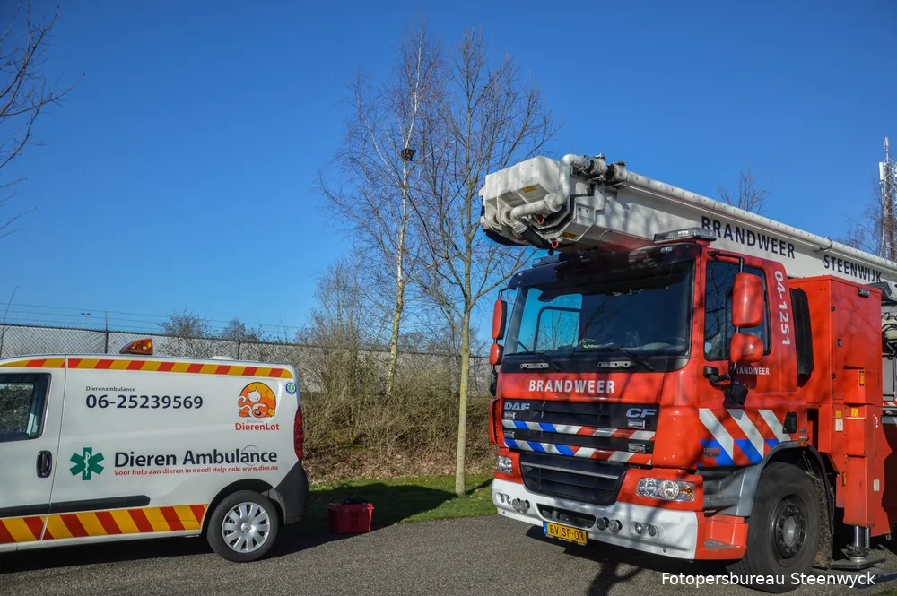 Op het sportpark aan de Middenweg in Steenwijk is dinsdagochtend een kat uit de boom gehaald door de brandweer.
