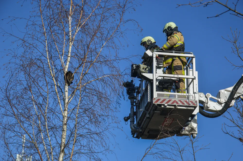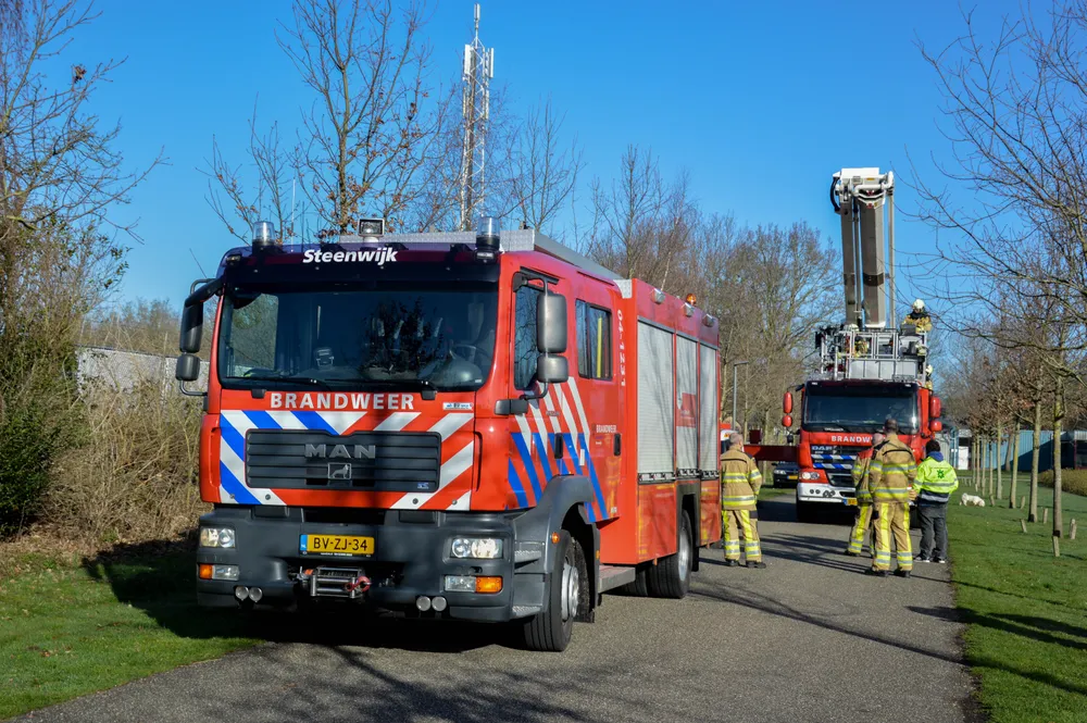 Zij kwamen niet veel later ter plaatse met een hoogwerker die al snel stond opgesteld.