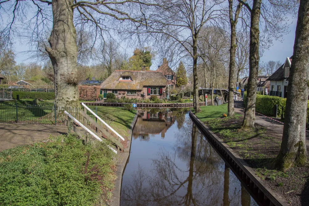 Rond het begin van de middag in Giethoorn was het verbod duidelijk te merken, strakke wateren en een lege Bovenwijde sierden het dorp.