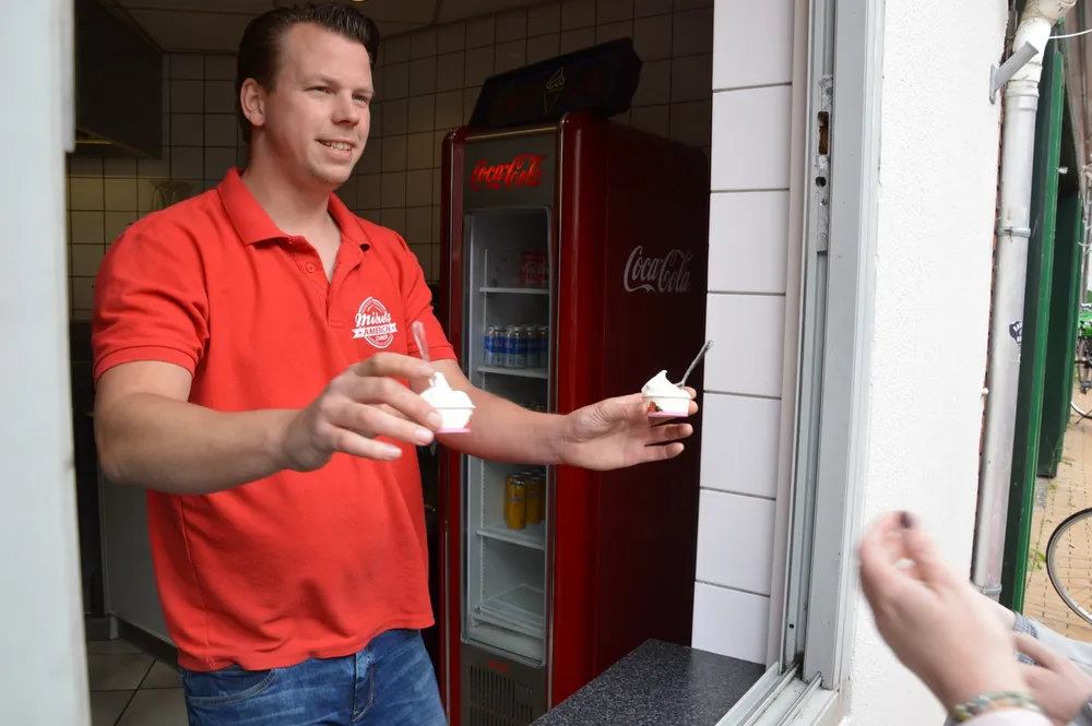 Sinds kort verkoopt Michel’s American Diner aan de Doelenstraat het nog onbekende “frozen yoghurt” het ziet er uit als soft ijs maar wordt gemaakt met verse yoghurt waardoor het ijs luchtiger en minder vet is.