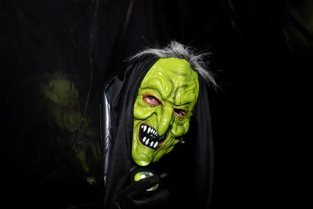Geheel ontspannen was het niet, onderweg kwamen zij enge monniken, heksen, monsters, dracula's en andere schrikbarende creaties tegen die ze lieten schrikken.
