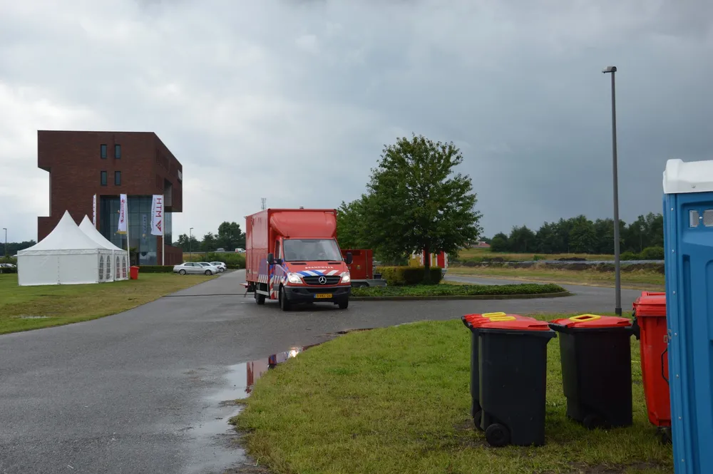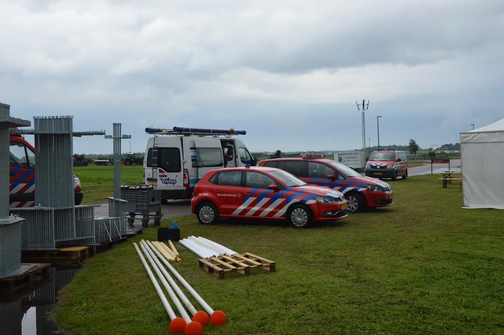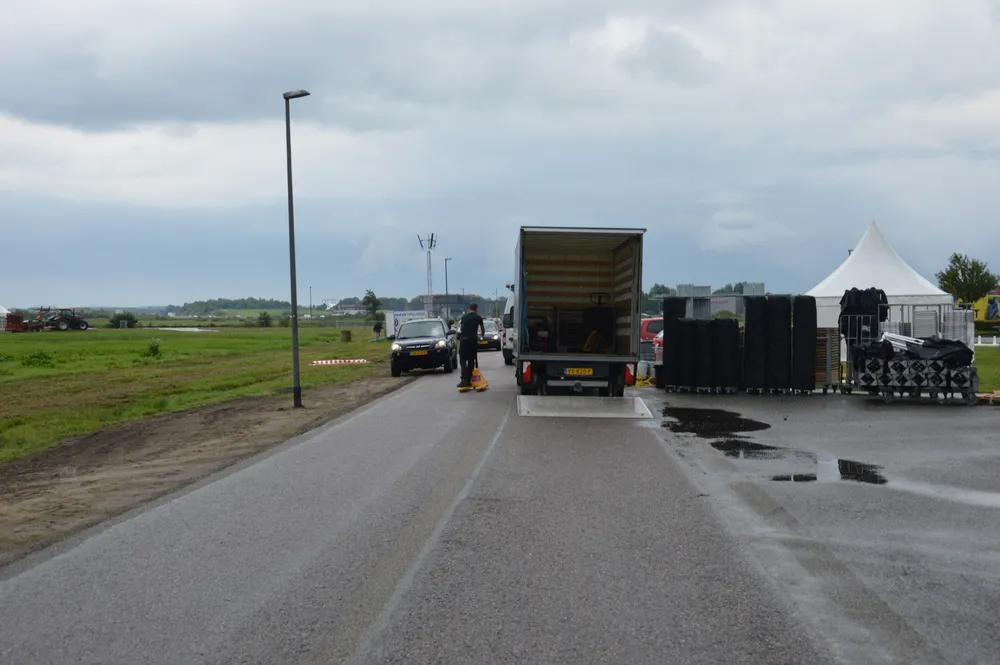 Een dag voor aanvang waren de voorbereidingen in volle gang, ondanks het slechte weer en de plensbuien was de organisatie druk bezig met het plaatsen van alle materialen en voertuigen.
