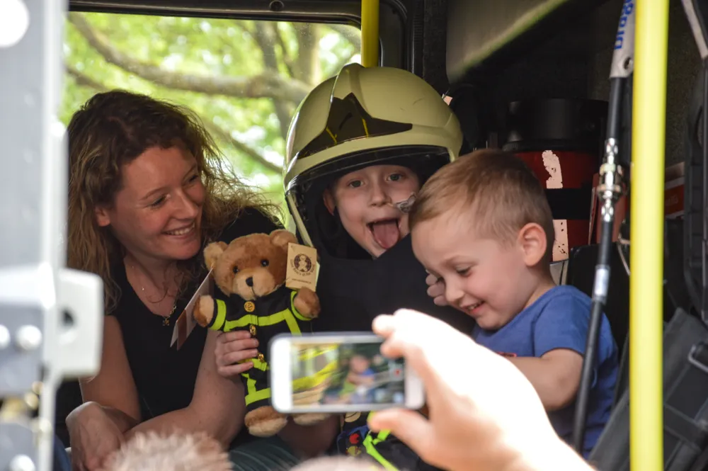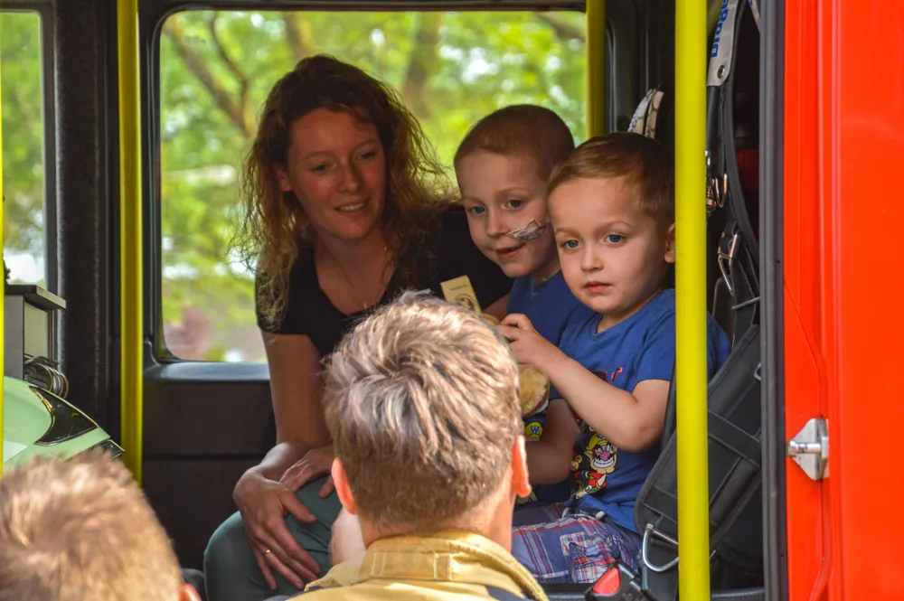 Samen met zijn broertje en ouders mocht hij een kijkje nemen in een echte brandweerauto, zowel op de plaats van de manschappen als die van de bevelvoerder.